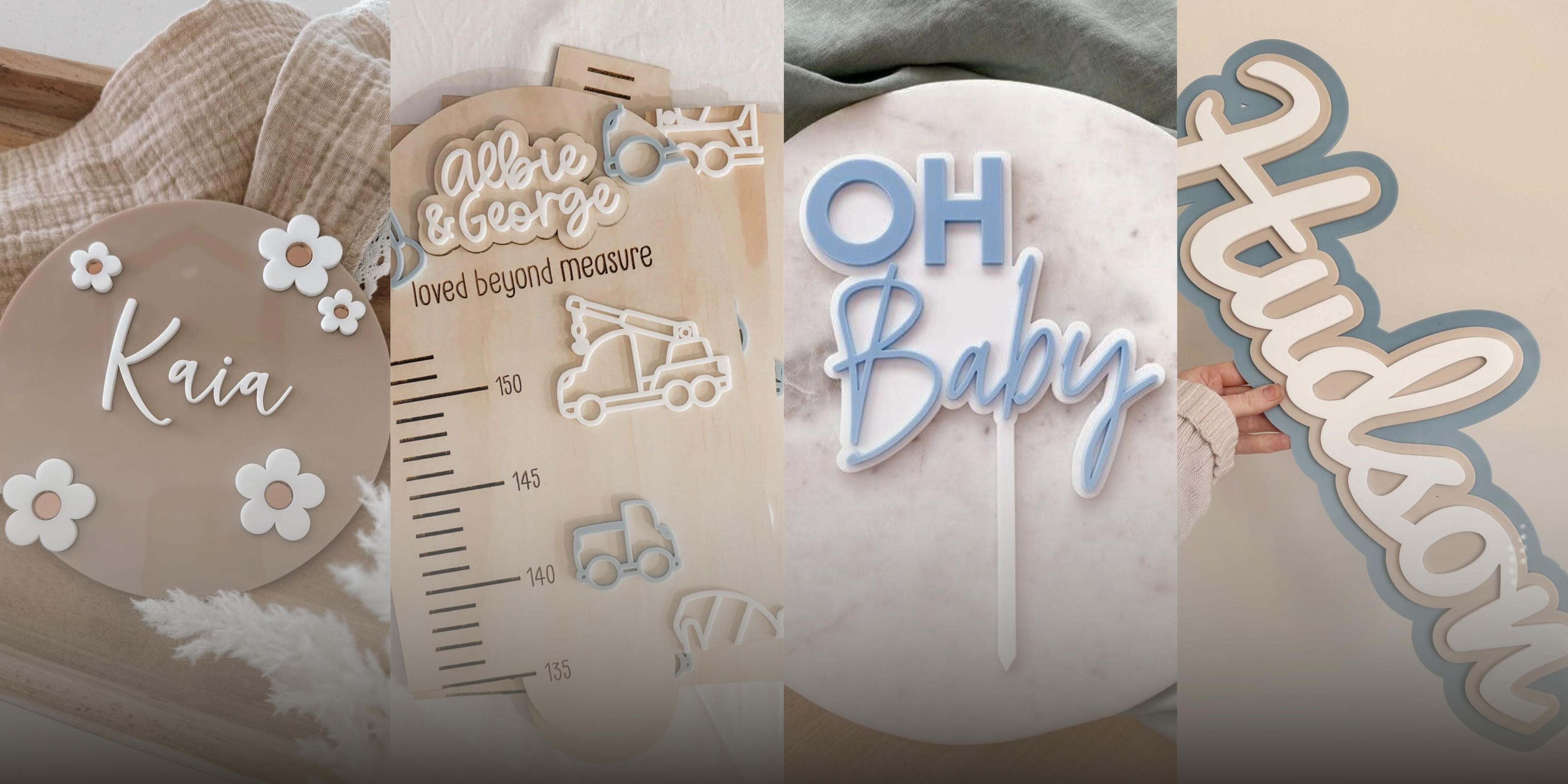 From name signs and wall art to milestone boards and event décor, we bring your ideas to life using premium materials, gentle colours, and timeless design.
